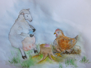 Der Freddy is noch nich da. Jolanda Deva und die wollige Walburga haben sich erstmal zum Teetrinken getroffen. So bissken tratschen eben.